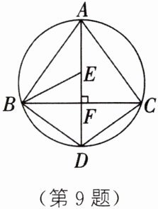 9. 如图,AD 为$\triangle ABC$的外接圆的直径,$AD\perp BC$,垂足为 F,$\angle ABC$的平分线交 AD 于点 E,连接 BD,CD.