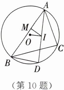 10. 如图,点 I 是△ABC 的内心,AI 的延长线和△ABC 的外接圆⊙O 相交于点 D,OI⊥AD,IM⊥AB,连接 BD. 求证: