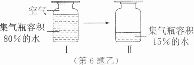 (5)若用图乙所示方法收集氧气:图Ⅰ的集气瓶中事先装有 80%的水,用排水法收集氧气后,集气瓶中仍留有 15%的水(如图Ⅱ所示),图Ⅱ集气瓶气体中氧气的体积分数是 (空气中氧气的体积分数为 21%,结果精确到 0.01%)。