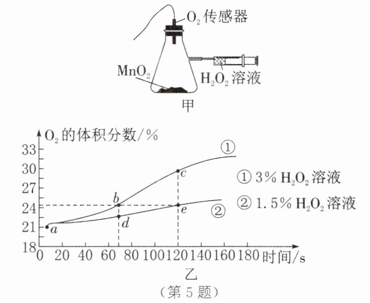 5. (2025·北京期末)利用图甲所示装置研究$ H_2O_2$的分解反应,所得结果如图乙所示。下列说法中,不正确的是( )