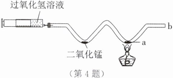 4. 用 W 形玻璃管进行如图所示微型实验:先给 a 处的物质加热使之燃烧,然后将注射器中的过氧化氢溶液推入管中使其与二氧化锰接触,并始终控制液体不进入 a 处。下列说法中,正确的是( )