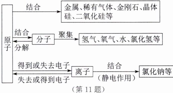 11. ★如图所示为物质与其构成微观粒子之间的关系图。请据图回答下列问题: