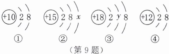 B.②③中的 x 和 y 一定均为 8