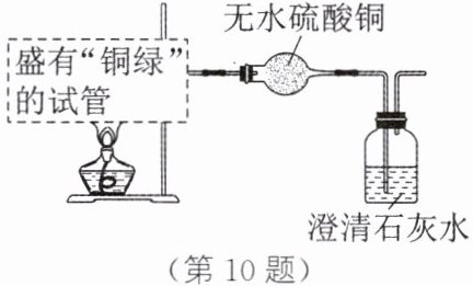 10. 某化学课外实验小组按如图所示实验来研究“铜绿”的性质。(已知:无水硫酸铜遇水会变成蓝色)。