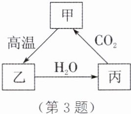 3. 如图所示为甲、乙、丙三种含钙物质的转化关系,推测丙可能为 ( )