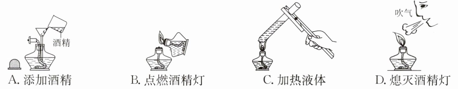 5. A 使用酒精灯时应注意安全,下列操作正确的是 (