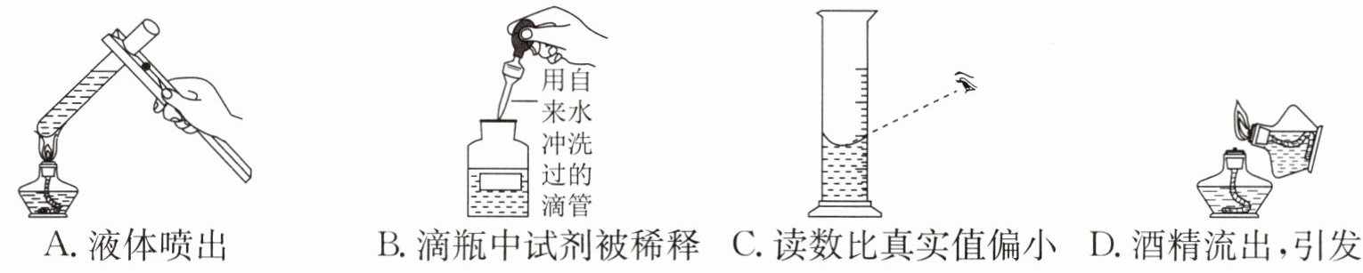 6. A (2024·松原一模)下列图示中的“错误实验操作”与图下面对应的“可能产生的后果”不一致的是 (
