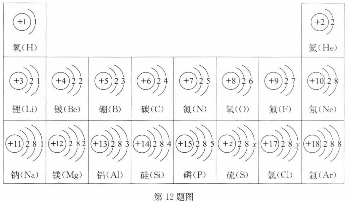 12. C 试依据核电荷数为 1~18 的元素的原子结构示意图,回答下列问题。