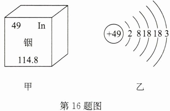 16.A 广西矿产资源丰富,铟的生产规模居世界同类企业首位,图甲是元素周期表中铟元素的信息,图乙是铟原子的结构示意图,回答下列问题。