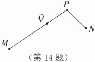 14. (2023·南京建邺期末)如图,有公共端点 P 的两条线段 MP,NP 组成一条折线 M-P-N,若该折线上一点 Q 把这条折线分成相等的两部分,我们把这个点叫作这条折线的“折中点”.已知 D 是折线 A-C-B 的“折中点”,E 为线段 AC 的中点,CD= 3,CE= 5,则线段 BC 的长为______