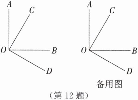 12. 如图,射线 OC 在∠AOB 的内部,射线 OD 在∠AOB 的外部,且∠AOB 与∠COD 互补,∠AOC= ∠BOD.