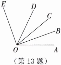 13. 如图,线段 OA,OB,OC,OD,OE 在同一平面内,且∠AOE= 110°,∠AOB= 20°.