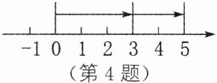 4. (2024·徐州期末)如图,一个点从数轴原点开始,先向右移动 3 个单位长度,再向右移动 2 个单位长度,由图可以看出,到达的终点是表示 5 的点.