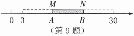 9. 如图,将一根木棒MN放在数轴上,它的两端点M,N分别落在点A,B处.