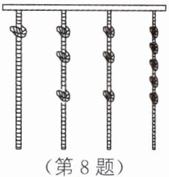 8. 在古代,人们通过在绳子上打结来计数,即“结绳计数”.当时有位父亲为了准确记录孩子的出生天数,在粗细不同的绳子上打结(如图),由细到粗(右细左粗),满七进一,那么孩子已经出生了 (