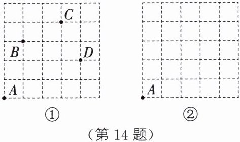 14. (2023·苏州工业园区段考)如图①,一只甲虫在5×5的网格图上沿着格线爬行. 它从A处出发去看望B,C,D处的其他甲虫,规定:向上向右为正,向下向左为负. 例如:从A处到B处记为A→B(+1,+3),从C处到D处记为C→D(+1,-2),其中第一个数表示左右方向,第二个数表示上下方向.
