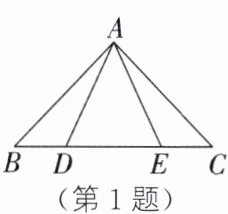 1. 如图,在$△ABC$中,$AB= AC$,点 D、E 在 BC 上,连接 AD、AE. 若只添加一个条件可证明$∠DAB= ∠EAC$,则添加的条件不能为 (