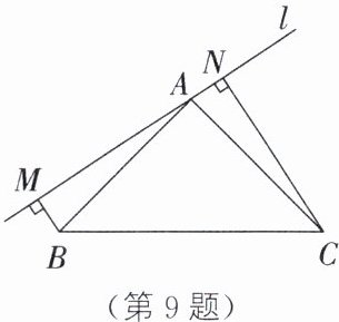 9. 如图,在△ABC中,AB= AC,直线l过点A,BM⊥直线l,CN⊥直线l,垂足分别为M、N,且BM= AN.求证:
