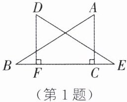 1. 如图,AC⊥BE于点C,DF⊥BE于点F,且BC= EF,如果添上一个条件后,可以直接利用“HL”来证明△ABC≌△DEF,那么这个条件应该是(