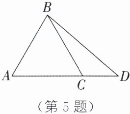 5. 如图,在$\triangle ABC$中,$AB = AC$,点$D在AC$的延长线上. 求证:$BD - BC < AD - AB$.