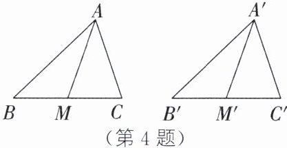 4. 如图,在$\triangle ABC和\triangle A'B'C'$中,$AM$,$A'M'分别是边BC$,$B'C'$上的中线,$AB= A'B'$,$AC= A'C'$,$AM= A'M'$.求证:$\triangle ABC≌\triangle A'B'C'$.