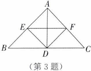 3. 如图,$AD是\triangle ABC$的中线,点$E$、$F分别在AB$、$AC$上,且$DE⊥DF$,连接$EF$.求证:$BE+CF>EF$.