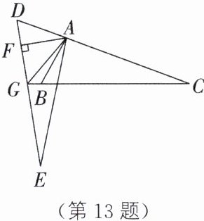 13. 如图,在△ABC和△ADE中,∠C= ∠E,BC= DE,CA= EA,过点A作AF⊥DE,垂足为F,DE交CB的延长线于点G,连接AG.