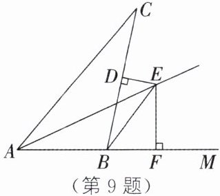 9. 如图,AE是∠CAM的平分线,点B在射线AM上,线段BC的垂直平分线交BC、AE于点D、E,过点E作EF⊥AM于点F.若∠ACB= 28°,∠EBD= 25°,则∠AED的度数为______