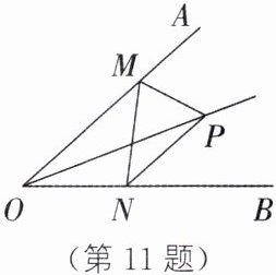 11. 如图,在∠AOB的两边OA、OB上分别取点M、N,连接MN,MP平分∠AMN,NP平分∠MNB,MP、NP交于点P.