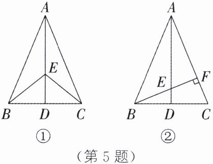 5. 如图①,在$\triangle ABC$中,$AB= AC$,D是BC的中点,点E在AD上.