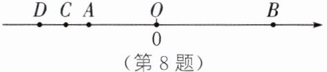 8. 如图,实数$-\sqrt {5}$、$\sqrt {15}$、m在数轴上所对应的点分别为A、B、C,点B关于原点O的对称点为D.若m为整数,则m的值为____.