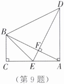 9. 如图,E为AC上一点,AC⊥BC,AC⊥AD,AB= DE,AB、DE交于点F,且AB⊥DE,连接BD、BE.