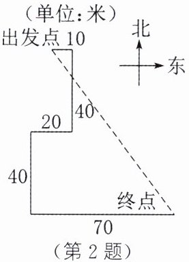 2. 如图,小明以广场为出发点,先向东走10米,又向南走40米,再向西走20米,又向南走40米,再向东走70米,小明到达的终点与原出发点之间的距离为 (