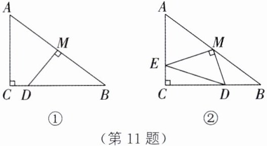 11. 在$Rt△ABC$中,$∠C= 90^{\circ }$,M为边AB的中点,点D在边BC上,连接MD.