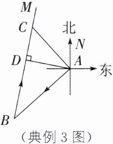 典例3 如图,一艘轮船从A港沿南偏西$48^{\circ }$方向航行100 km到达B岛,再从B岛沿BM方向航行125 km到达C岛,A港到航线BM的最短距离AD是60 km.