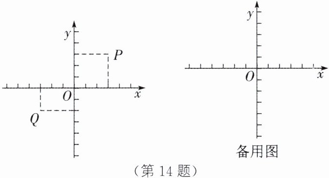 14. 在平面直角坐标系中,对于$P$、$Q$两点给出如下定义:若点$P到x$轴、$y轴的距离中的较大值等于点Q到x$轴、$y$轴的距离中的较大值,则称$P$、$Q$两点为“等距点”.如图中的$P$、$Q$两点即为“等距点”.