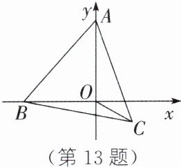 13. 如图,在平面直角坐标系中,点$A的坐标是(0,6)$,$B是x$轴上的一个动点.以$AB为边向右侧作等边三角形ABC$,连接$OC$,在运动过程中,$OC$长的最小值为______.