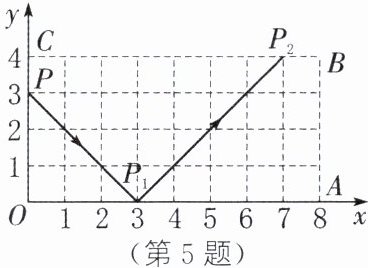 5. 在平面直角坐标系中,动点 $ P $ 从点 $ (0,3) $ 出发,沿如图所示的方向运动,每当碰到长方形 $ OABC $ 的边时反弹,反弹时反射角等于入射角. 记点 $ P $ 第 $ 1 $ 次碰到长方形的边时的点为 $ P_1(3,0) $,第 $ 2 $ 次碰到长方形的边时的点为 $ P_2(7,4) … … $ 当点 $ P $ 第 $ 2024 $ 次碰到长方形的边时,点 $ P_{2024} $ 的坐标为 ( )