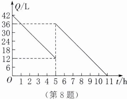 8. *某机动车出发前油箱内有油42L,以40km/h的速度匀速行驶一段时间后,到加油站加油,油箱内剩余油量Q(L)与行驶时间t(h)之间的关系如图所示.