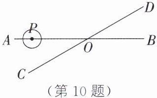 10. 如图,直线AB,CD相交于点O,$∠AOC= 30^{\circ}$,半径为1cm的$\odot P$的圆心在直线AB上,开始时,$PO= 6cm$.如果$\odot P$以1cm/s的速度向右运动,那么当$\odot P的运动时间t(s)$满足条件______时,$\odot P$与直线CD相交.