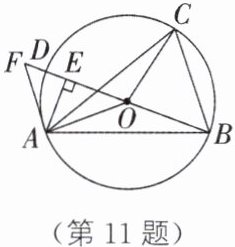 11. 如图,⊙O是△ABC的外接圆,且 AB= AC,连接 BO 并延长交⊙O于点 D,过点 A 作 AE⊥BD,垂足为 E,点 F 在 BD 的延长线上,连接 AF,使∠FAE= 2∠ABD,连接 OA、OC.
