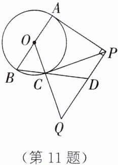 11. 如图,AB为⊙O的直径,PA、PC分别与⊙O相切于点A、C,PQ⊥PA,PQ交OC的延长线于点Q.