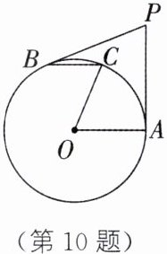 10. 如图,PA、PB是⊙O的切线,A、B为切点,C为$\overset{\frown}{AB}$上的一点,∠AOC= ∠P.