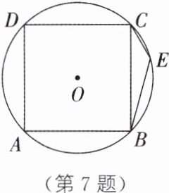 7.如图,正方形ABCD内接于$\odot O$,E为$\widehat{BC}$上一点,连接BE、CE.若$\angle CBE= 15^{\circ}$,$BE= 5$,则正方形ABCD的边长为______.