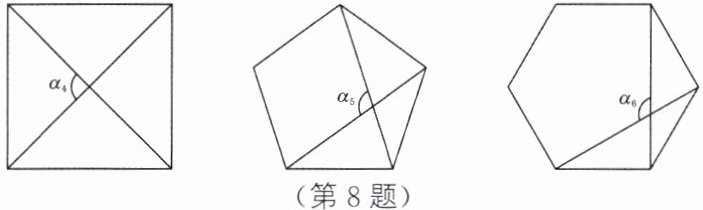 (1)观察图中各正多边形相邻两对角线相交所形成的较大的角$\alpha_{4}$、$\alpha_{5}$、$\alpha_{6}$,则$\alpha_{4}= $