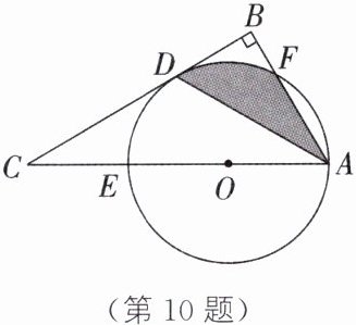 10. 如图,在 Rt△ABC 中,∠B= 90°,AD 平分∠BAC,交 BC 于点 D,点 E 在 AC 上,以 AE 为直径的⊙O 经过点 D,交边 AB 于点 F.