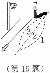 15. 从路灯下经过时,人影的长度会发生变化,若小明夜晚沿如图所示的直线经过路灯,他头部的影子会沿着图中的( )