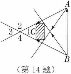14. 如图所示,AB为一物体,C是一个不透明的物体,若人眼在不同的区域1、2、3、4处观察物体AB,则人眼完全看不到物体AB的区域有( )