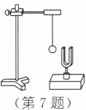7. (2023·无锡)如图所示,系在细绳上的乒乓球在竖直方向静止不动,将正在发声的音叉慢慢靠近并接触乒乓球,观察到乒乓球被弹起,说明声音是由物体 产生的,音叉发出的声音通过 传入我们的耳中。