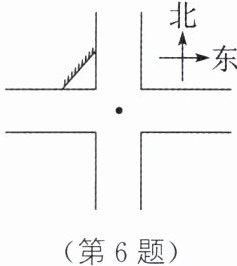 6. 十字路口矗立着一幢大楼,它临街的一面是用玻璃装饰的,如图所示。交警在十字路口中心面向北站立,从大楼玻璃中看到一辆汽车向东行驶,驶到十字路口转弯向南行驶。这辆汽车实际是 ( )